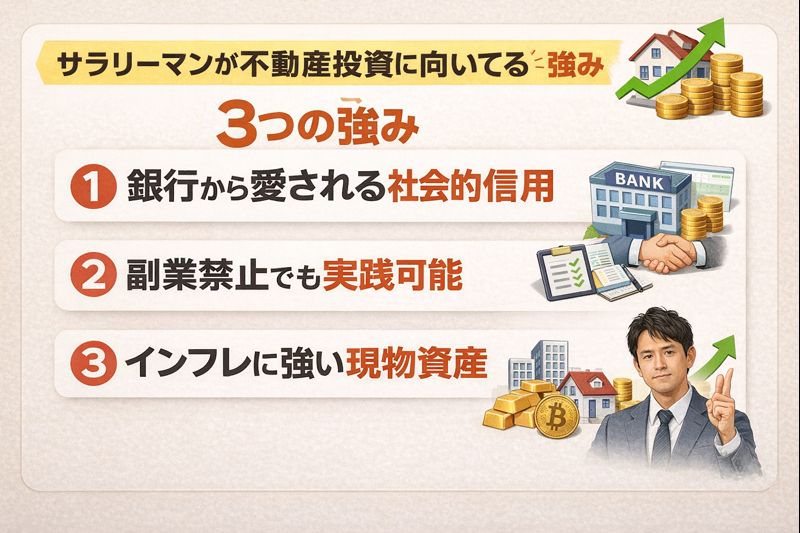 僕たちサラリーマンが、なぜ不動産投資のスタートラインで圧倒的に有利なのか。その秘密を3つのポイントに絞って解説します。