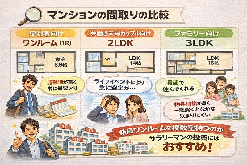 今回は、ターゲット別の特徴を整理し、なぜ僕たちサラリーマンには「単身者向けワンルーム」が最強なのかを解説します!