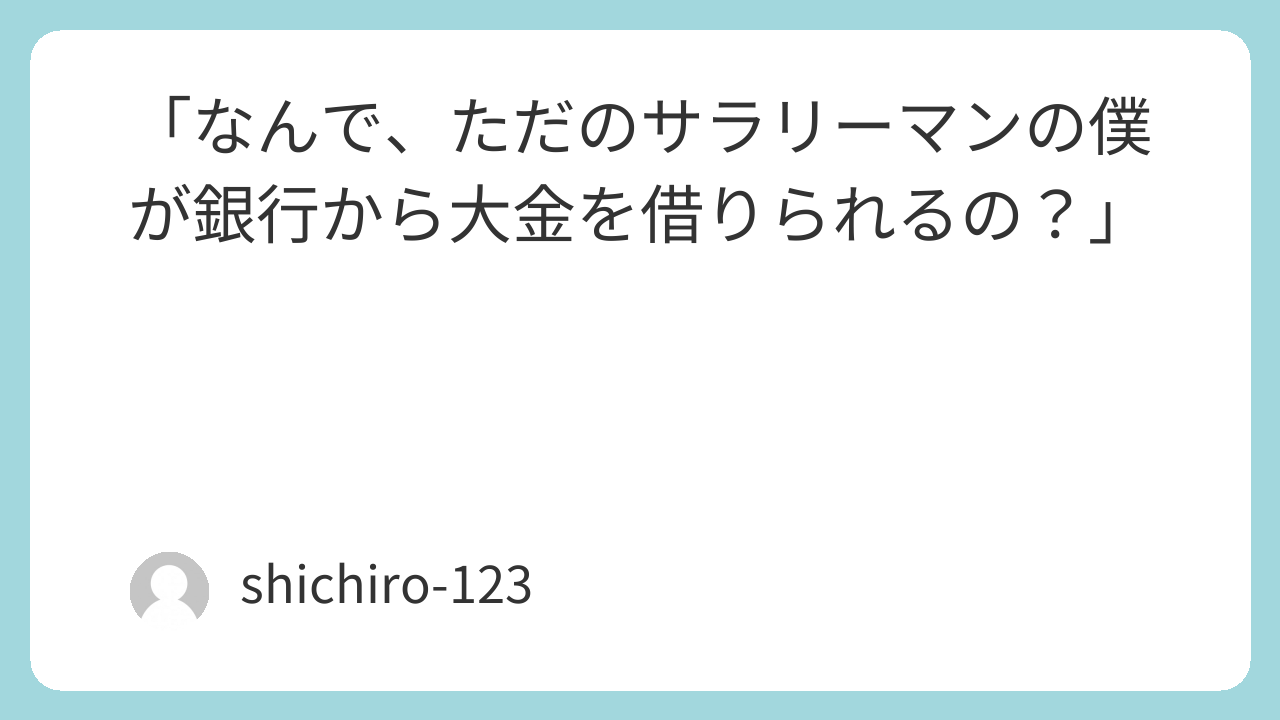「なんで、ただのサラリーマンの僕が銀行から大金を借りられるの?」って、不思議に思いますよね。