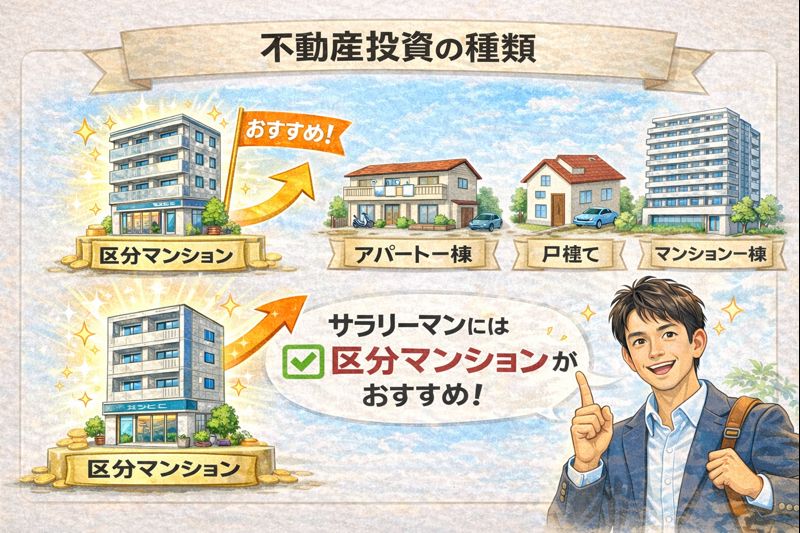 今回は、投資用不動産の種類と、なぜ僕たちが「マンションの一室(区分マンション)」からスタートするのがベストなのかを解説します!