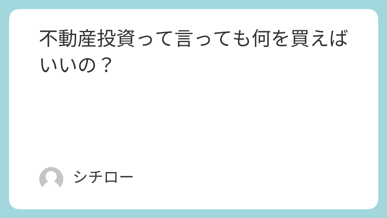 不動産投資に興味を持つと、まずぶつかるのが「結局、何を買えばいいの?」という疑問ですよね。